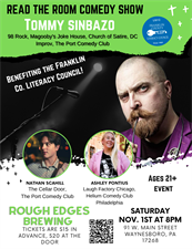 Join us for a hilarious night of adult humor to support adult education at the Read The Room Comedy Show! Get ready to bust a gut as talented comedians Ashley Pontius, Nathan Scahill, and Tommy Sinbazo take the stage at Rough Edges Brewing in Waynesboro, PA. This event promises to tickle your funny bone and leave you in stitches. Proceeds from the event will support adult education programs through LIU12 Franklin County Literacy Council. Grab a drink, sit back, and get ready to laugh until your cheeks hurt!